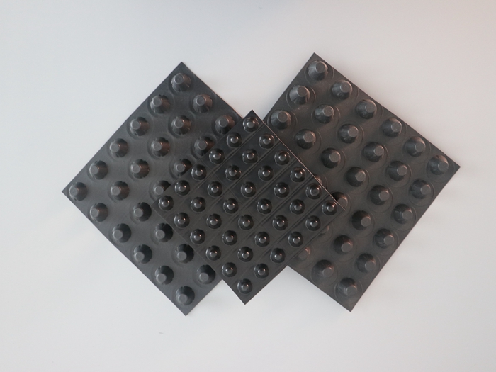 防排水保護板都有的凹凸式中空立筋結構,可以快速有效導出雨水,大大減少甚消除防水層的靜水壓,通過這種主動導水原理可以達到主動防水的效果。